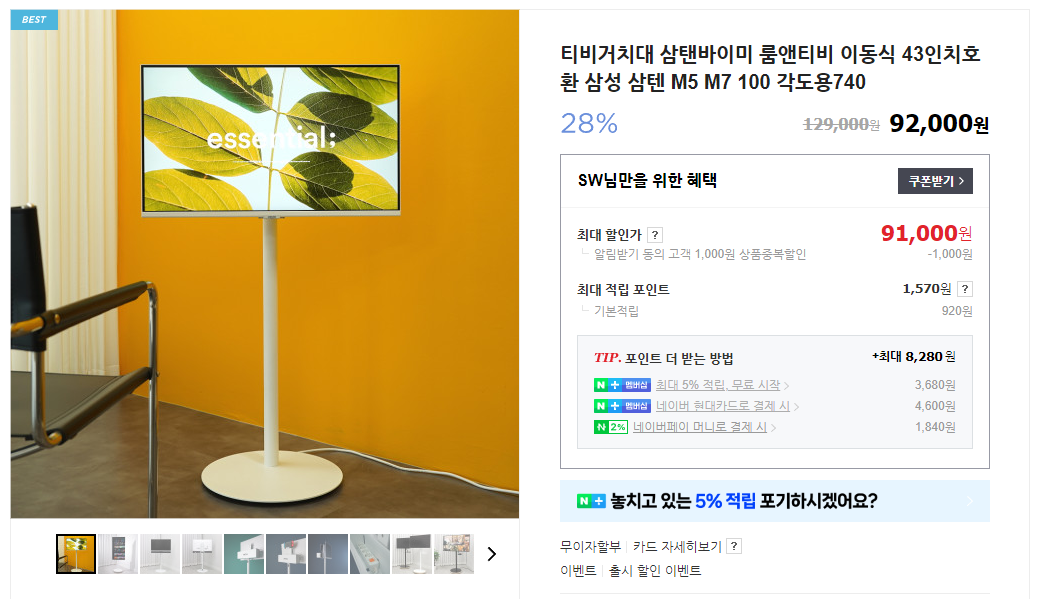 현대M포인트몰에서 다른 곳 보다 저렴하게 판매하길래 구매한 43인치 스마트티비입니다.