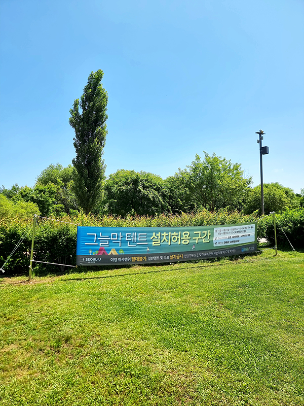 텐트를 설치할 수 있는 공간은 별도로 있습니다.