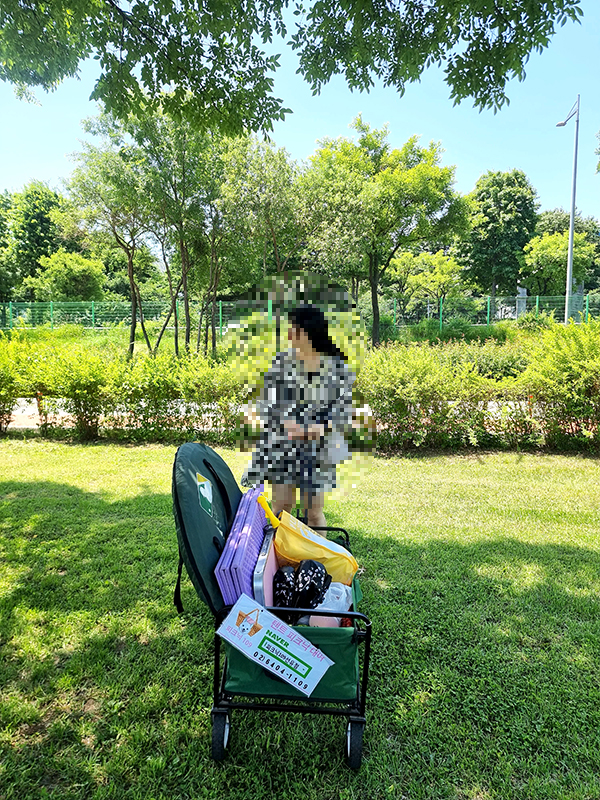 끌차는 여자가 끌어도 부담없는 정도입니다.